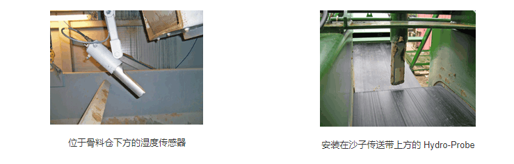 Hydronix 傳感器具有多種不同的安裝選項,可以根據各個工廠的要求安裝在不同的位置。可以將傳感器安裝在料倉頸部或料倉門下面以獲得佳的效果。采用這種安裝方式的常見傳感器是 Hydro-Probe;在沙子或骨料從料倉排出并經過傳感器面板時,該傳感器將測量讀數。如果很難將傳感器安裝在該位置,也可以將傳感器安裝在料倉內部以獲得良好的效果。